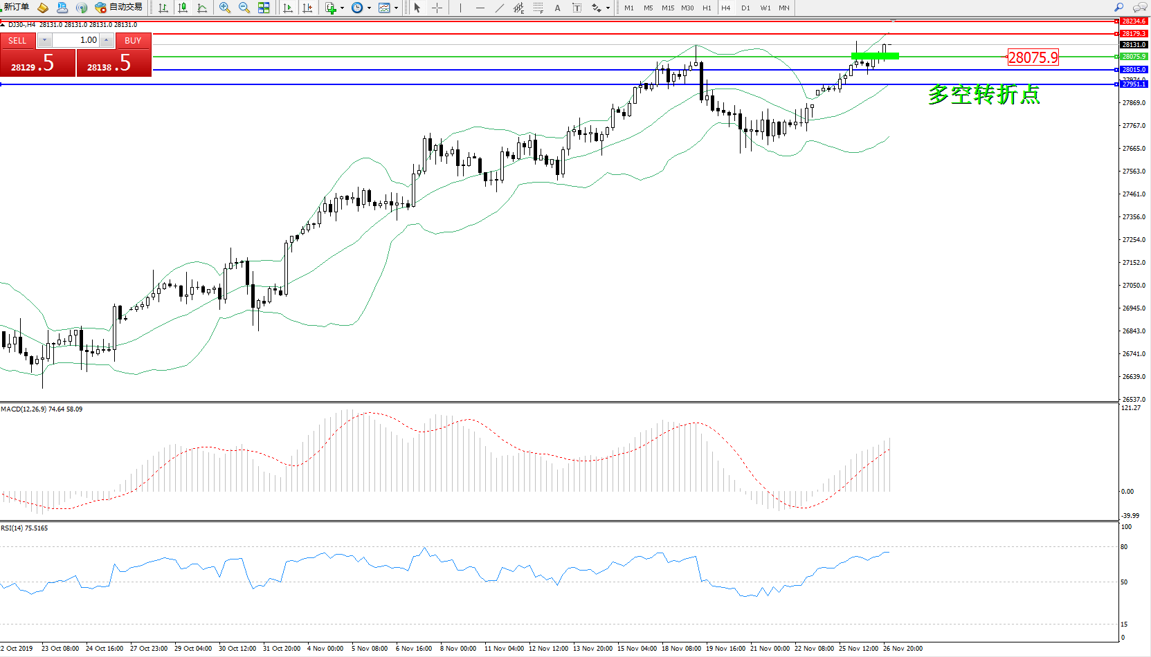 道琼斯指数11月26日(周二)收盘上涨54.40点,涨幅0.19%,报28120.86点。零售板块领涨。感恩节销售旺季将至,国际贸易谈判进展的消息与鲍威尔对美国经济状况的积极评价提振了市场信心。美联储卡普兰表示,只有看到前景发生重大变化的情况下,他才会支持调整利率。美联储主席鲍威尔称,只要接下来发布的数据总体符合我们的预期,我们便认为当前的货币政策立场可能依然适宜”。