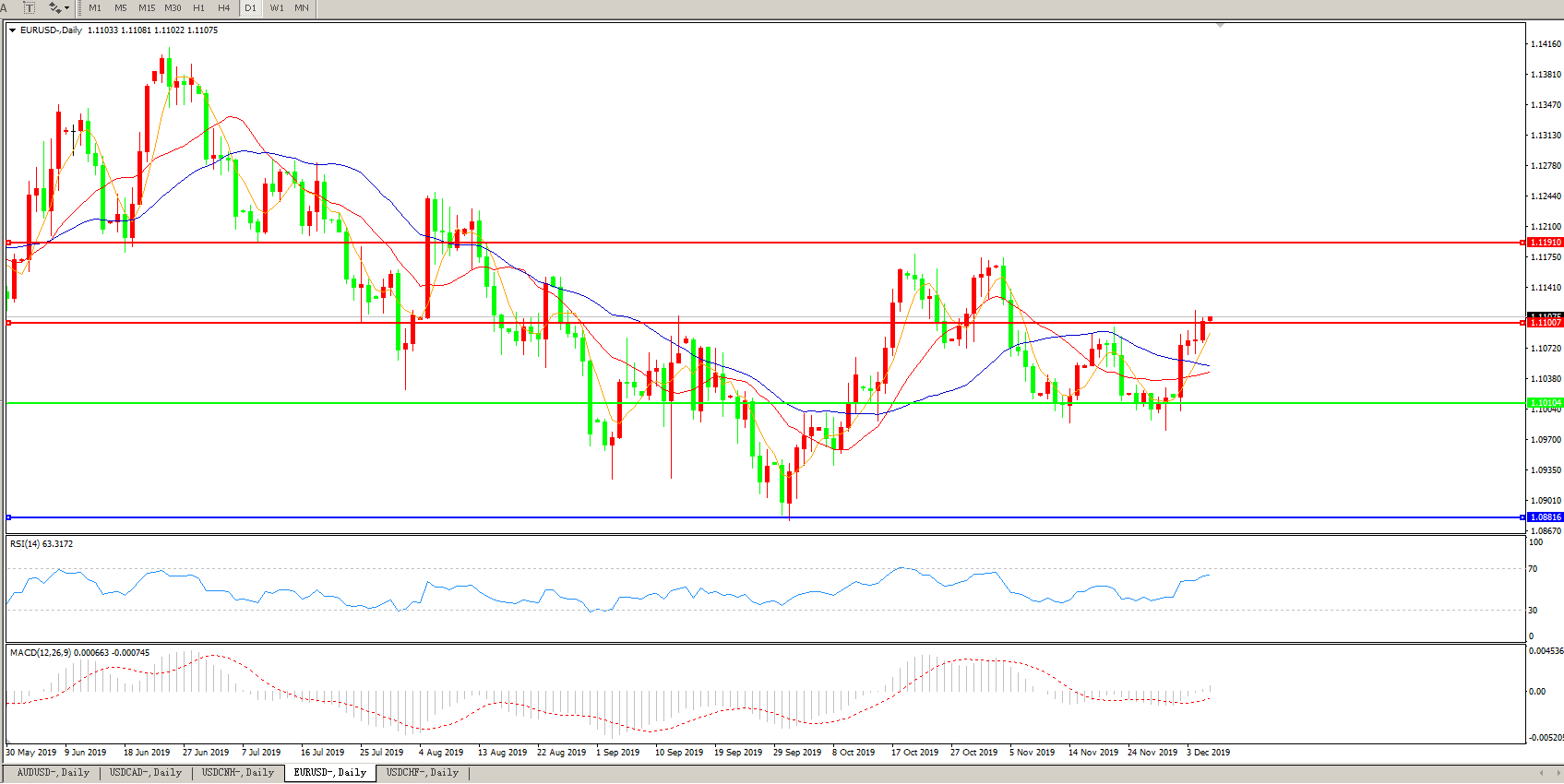 交易策略:1.1000上方看涨,目标1.1100、1.1190