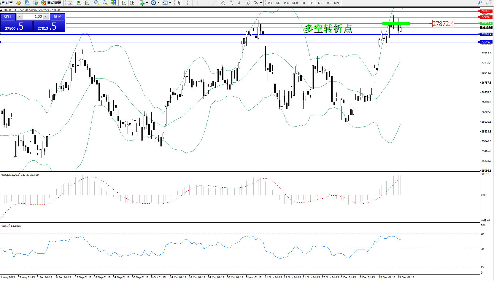 恒指HK50 ——4小时K线图显示: