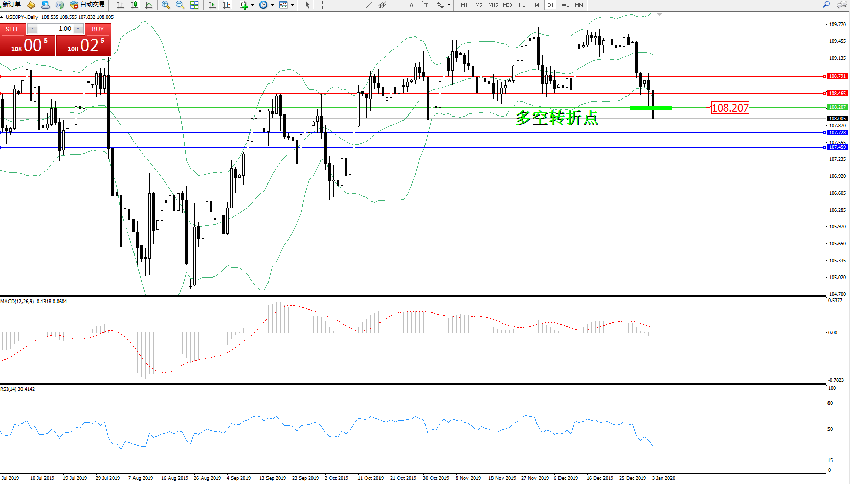 美元兑日元下跌0.44%108.09日元;一度下跌0.7%,创出自82日以来的最大单周跌幅。鉴于日本是全球最大的债权国,日元经常被视为规避风险的货币。日本金融市场适逢假日休市,也使交投清淡,放大了这一走势。空袭的消息传出后,美国国债期货上涨,基金在东京市场做空美元兑日元,日元连续走强,日元兑美元盘中一度触及去年1010日以来的最高水平,因美国空袭杀死伊朗将军事件发生后,投资者对避险资产需求增加。