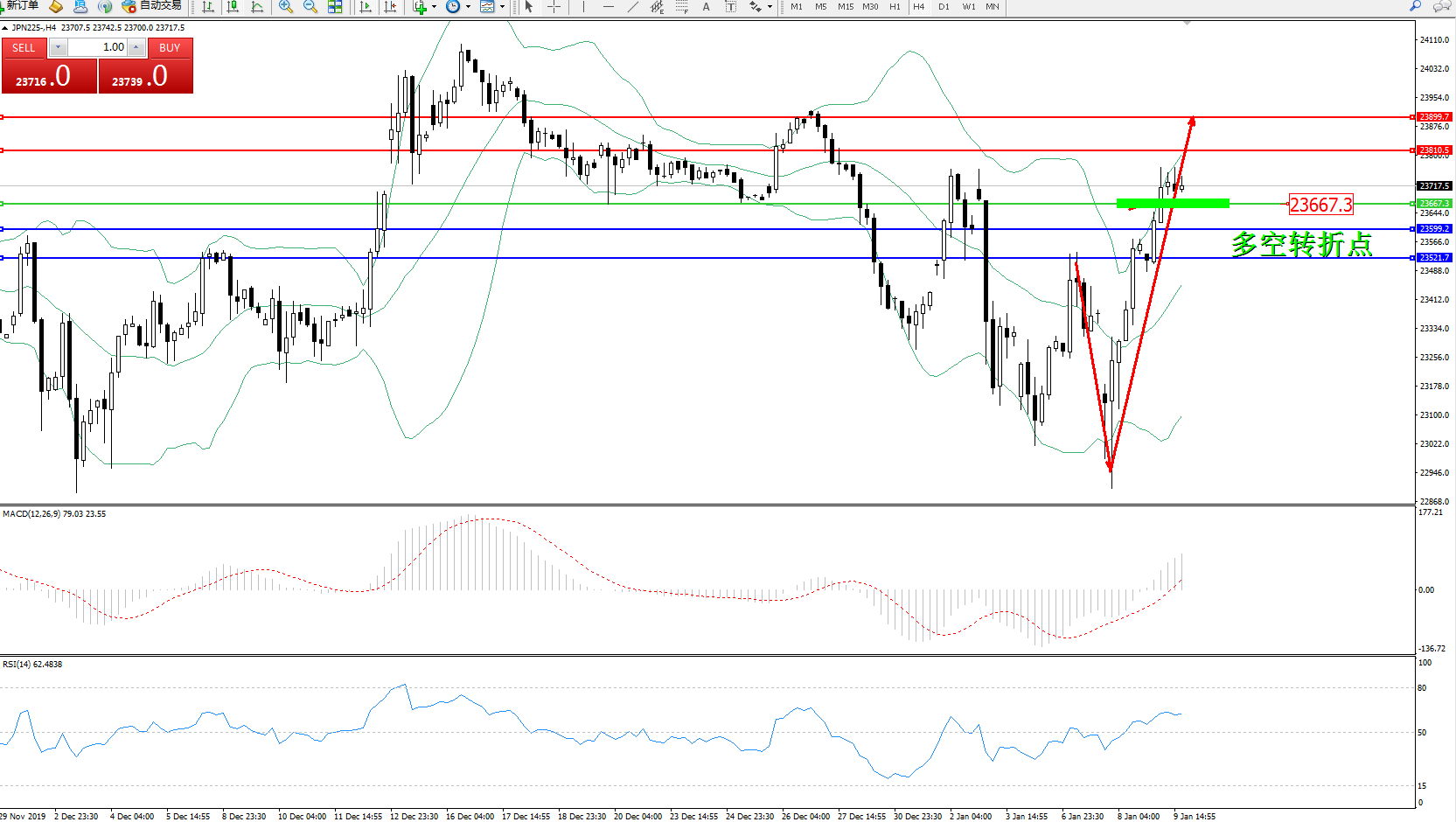 日经225指数1月9日(周四)收盘上涨515.74点,涨幅2.22%,报23720.50点。特朗普发表讲话称,伊朗的袭击中没有美国人受到伤害,伊朗似乎已收手,克制了对美国目标发动更多的袭击。同时伊朗方面也表示伊朗不想让冲突升级或挑起战争,周三凌晨的空袭“结束了”对上周五狙杀苏莱马尼的报复。这令市场押注美伊将不会扩大对立,这使得市场的担忧情绪迅速回落。
