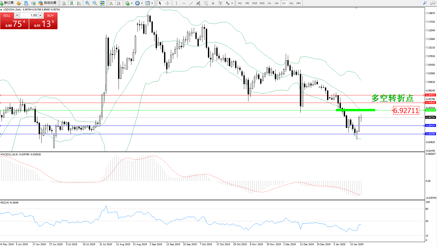 备选策略:6.92711上方看涨,目标6.94818、6.96925