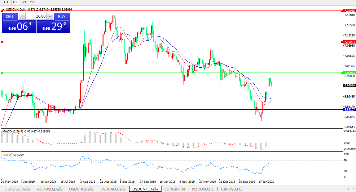 交易策略: 在7.0000之下,看跌,目标价位为6.8820,然后为6.7600。