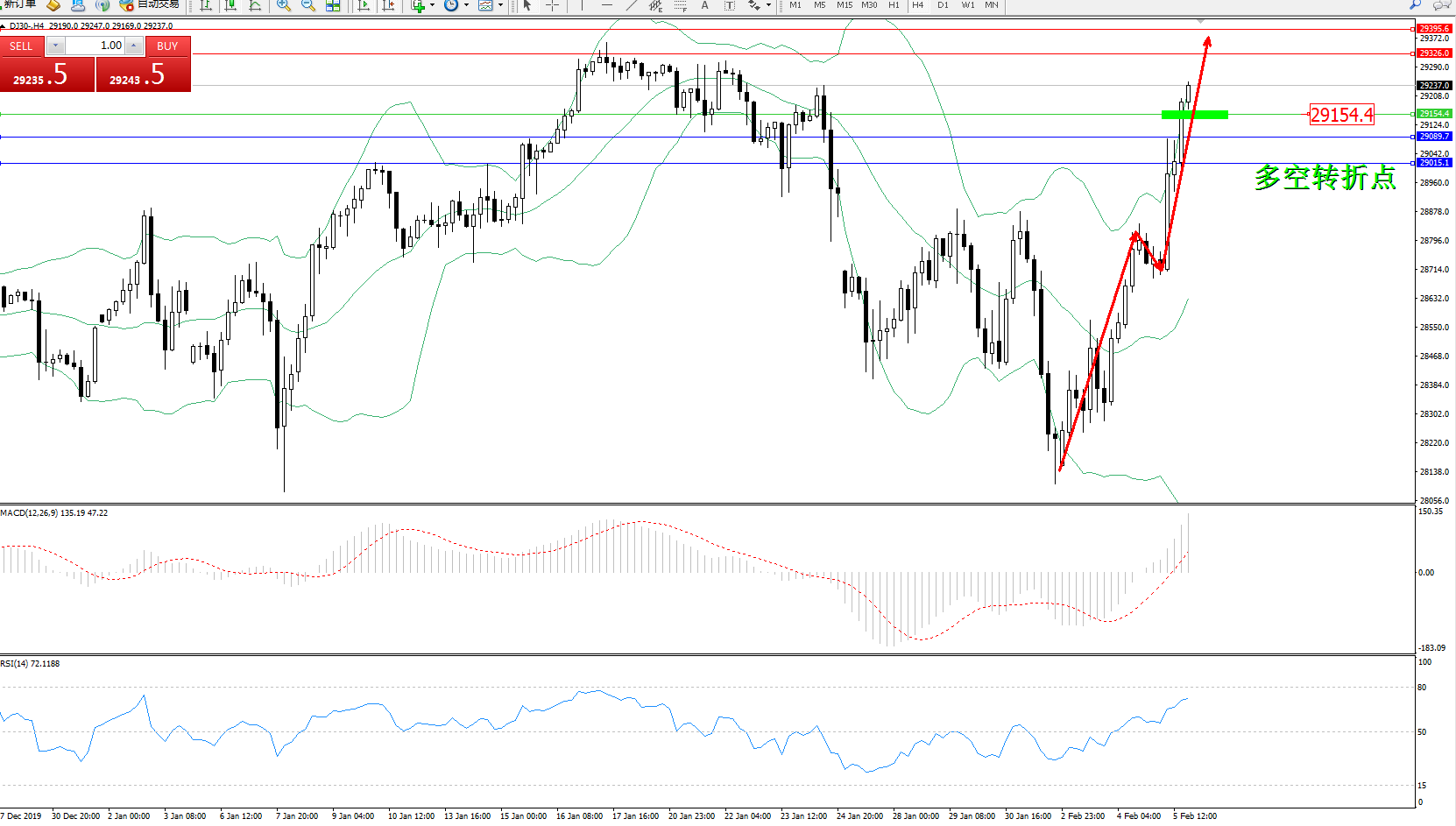 道琼斯指数2月5日(周三)收盘上涨483.20点,涨幅1.68%,报29290.85点。特朗普的国情咨文演说或提振美元上涨;若特朗普传递将执行扩张的财政政策,届时美联储年内降息的预期料将降温。随着2020年大选年的到来,倘若美国总统特朗普在国情咨文演说中暗示将采取扩张的财政政策,预计美元将受此提振上涨。在瑞士达沃斯举行的世界经济论坛上,特朗普曾透露其计划在90天内公布中产阶级的减税计划。因此,他很有可能借此机会披露更多相关的信息。