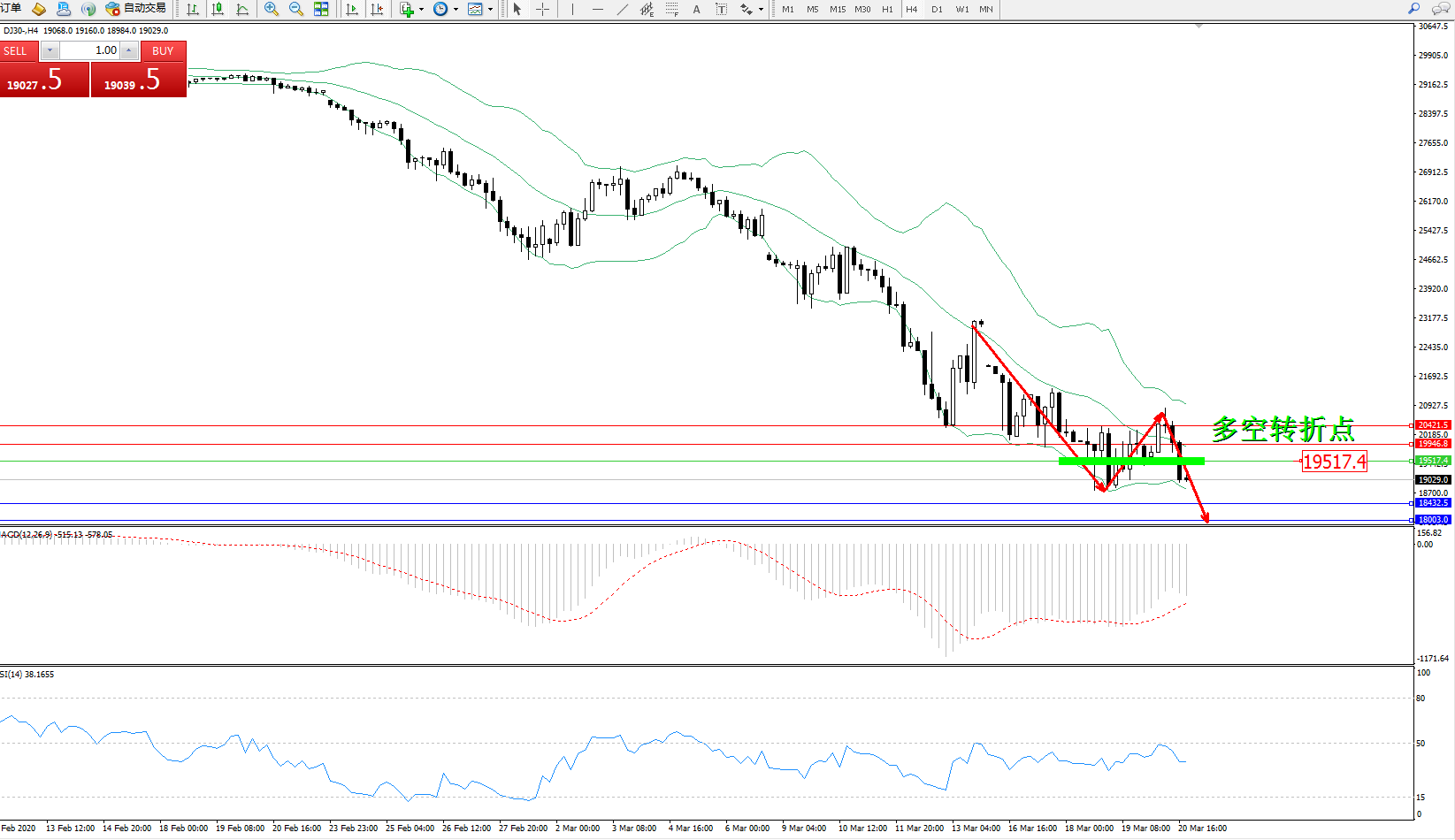 道琼斯指数3月20日(周五)收盘下跌913.30点,跌幅4.55%,报19173.91点。美股今日高开,道指高开100点后震荡下行,盘中二度转跌,尾盘跳水,一度跌近千点。美国股市录得2008年10月以来表现最糟糕的一周,纽约州和加州实施严格的限制措施,以遏制新冠病毒蔓延,这加剧人们对经济受损的担忧。"四巫聚首日"加剧了周五市场的震荡,投资人在期货和选择权合约到期前平仓。美国三大股指均录得2008年10月以来最大单周跌幅,不过波动性指数下跌,收在66.04,一些投资者认为这是抛盘可能减弱的迹象。投资人目前指望未来几天出台进一步刺激措施,因美国参议院正在考虑一项1万亿美元的经济刺激计划,其中包括直接给美国人发放现金。