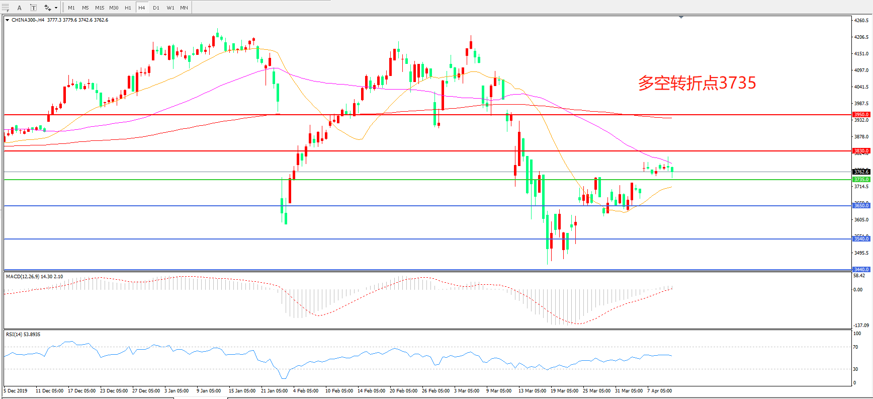 4小时图看,沪深300维持窄幅震荡,整体波幅不大,短期均线拐头向上,MACD绿柱缩短,RSI指标走平,日内延续上行概率较大。