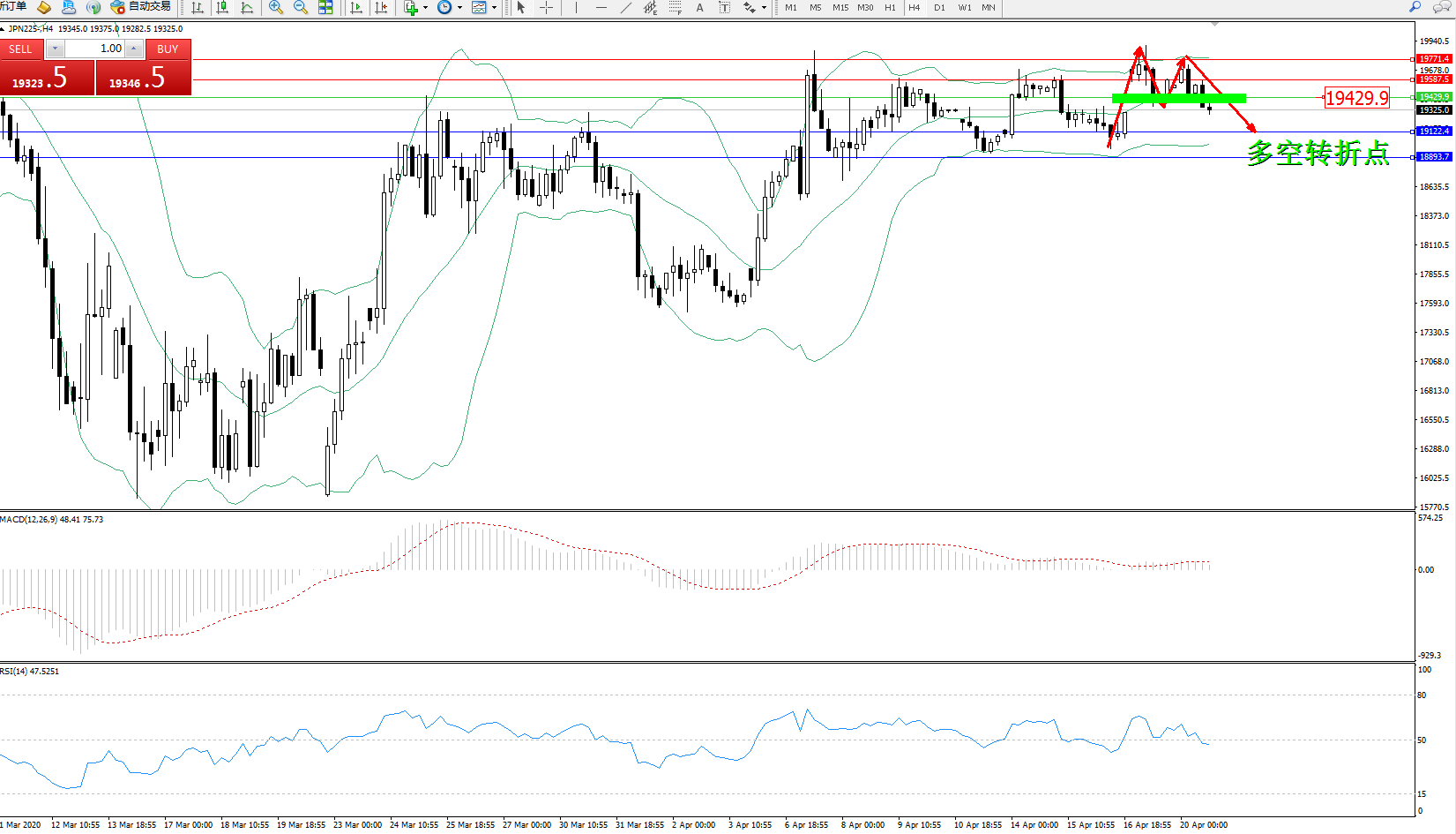 日经225指数4月20日(周一)收盘下跌249.26点,跌幅1.25%,报19648.00点。日本3月出口下滑幅度为近四年来最大,因包括汽车在内的对美国出口创2011年以来最大降幅,凸显出新冠疫情对全球需求和贸易的破坏。周一的低迷数据凸显出安倍政府在应对经济活动崩跌方面面临的挑战。预计经济活动重挫将导致全球经济陷入1930年代大萧条以来最严重下滑。日本财务省称,日本编制了25.7万亿日元的额外预算,用于经济刺激;将支付12.9万亿日元用于向家庭派发现金。