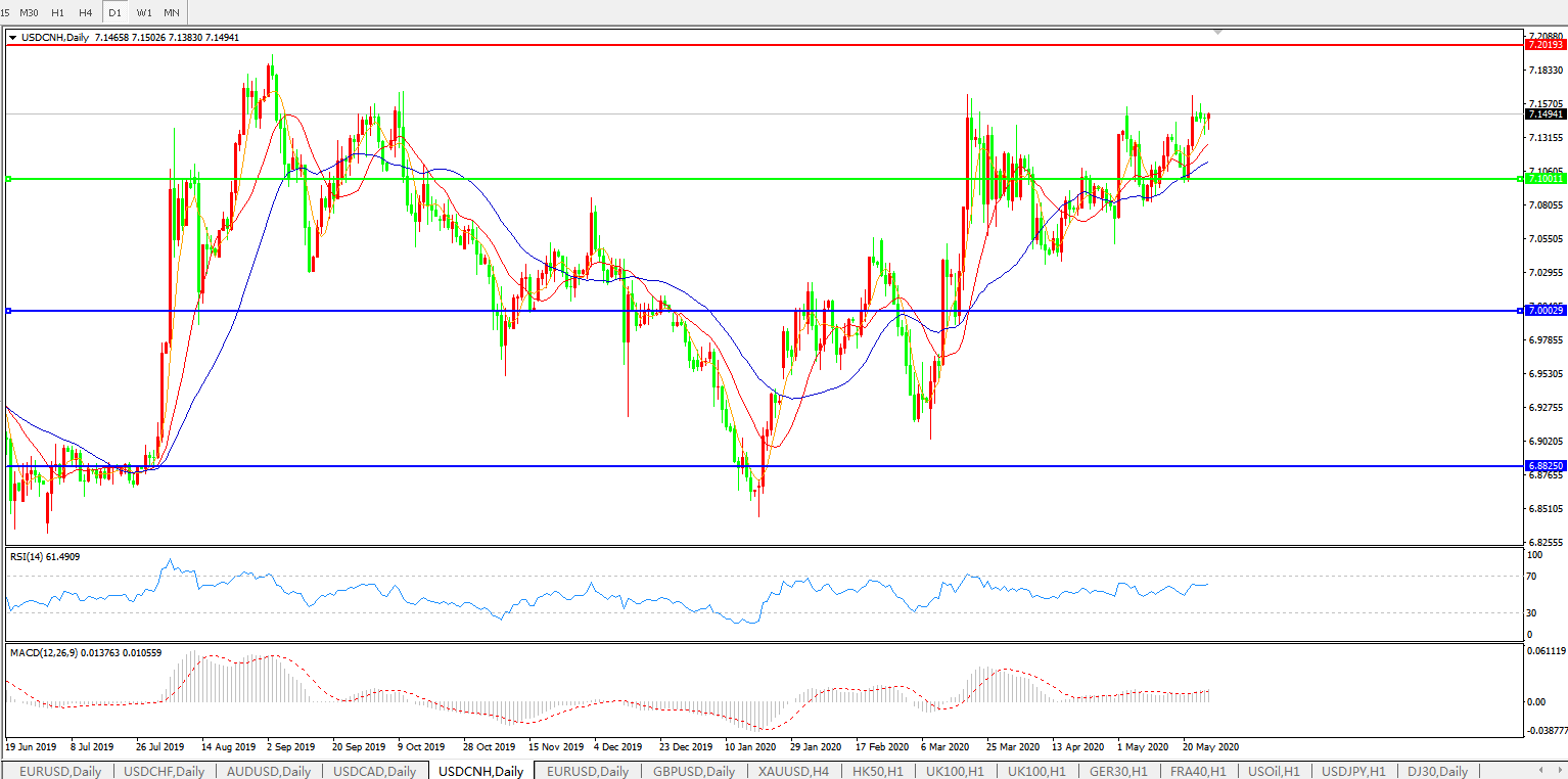 交易策略: 在7.1000之上,看涨,目标价位为7.2000,然后为7.3000。