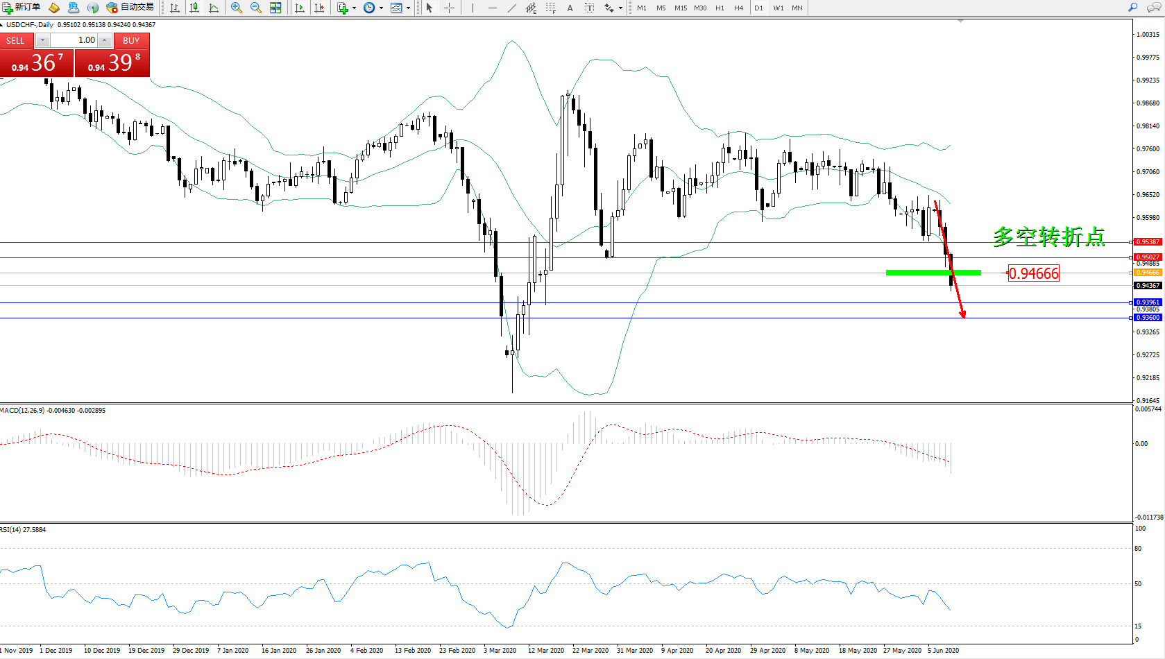 交易策略:0.94666下方看跌,目标0.939610.93600