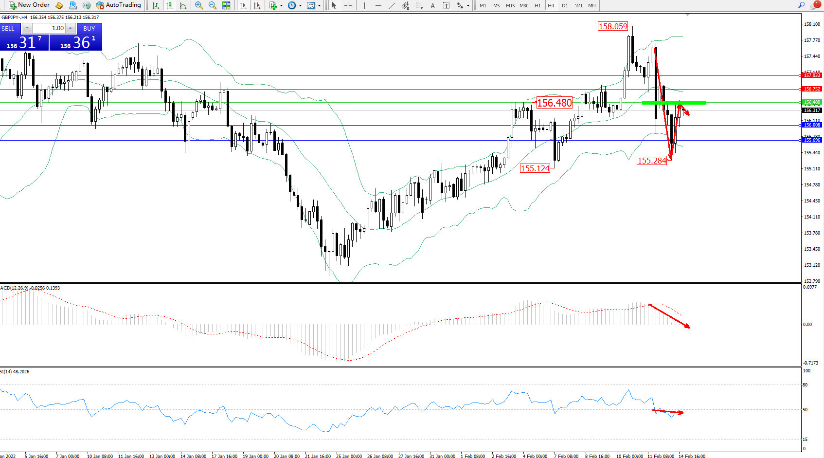 技术点评:高位空头动力急速震荡下挫,低位抵达155.284位置节点后开始快速拉升,多头动力有伺机入场迹象,但高位下行趋势或将持续,布林带指标呈缓慢张口走势良好,MACD指标指标处于多头区域回撤至0轴线附近弱势徘徊中,RSI指标处于50均衡线附近窄幅整理中;