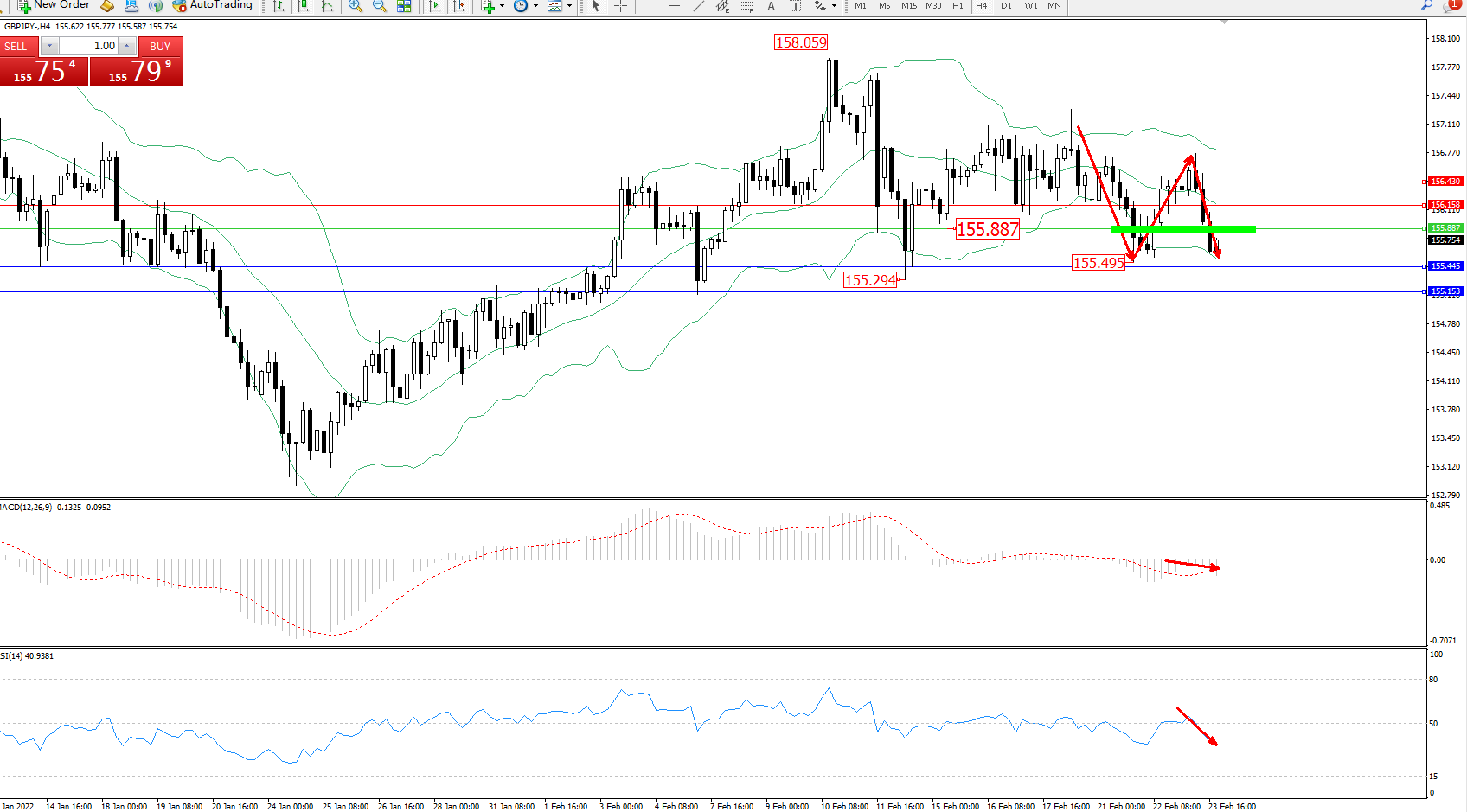 交易策略:155.887下方看跌,目标155.445、155.153