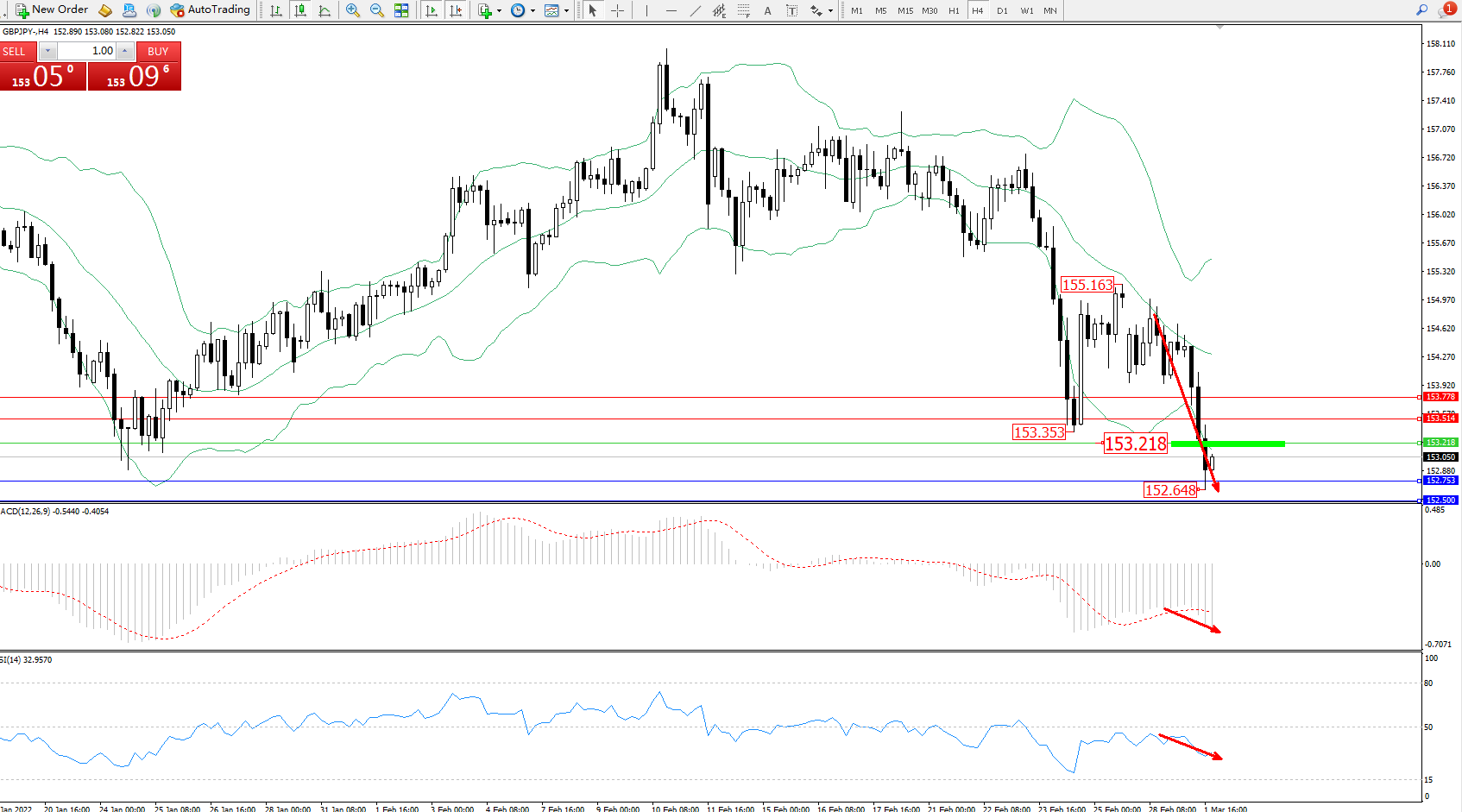技术点评:空头动力延续布林带指标通道中下轨区间持续震荡下挫,低位抵达152.648附近节点后开始整理,短期空头动力有继续向下移动态势,布林带指标呈张口走势持续中,MACD指标处于空头区域维持震荡下行,RSI指标处于50均衡线下侧不断整理下移;