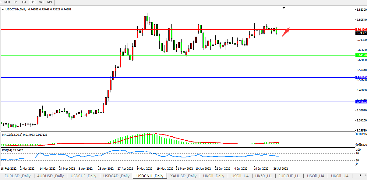 美元人民币USDCNH 日线图: