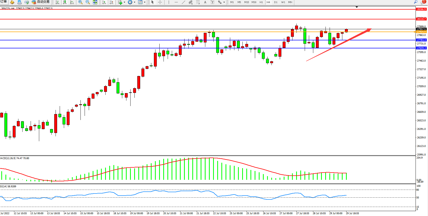 日经225指数7月29日(周五)收盘下跌25.48点,跌幅0.09%,报27790.00点。日本6月工厂产出创逾九年来最快增速,因亚洲大国防疫封控造成的干扰有所缓解,这对希望经济前景得到改善的决策者来说是一个向好迹象。