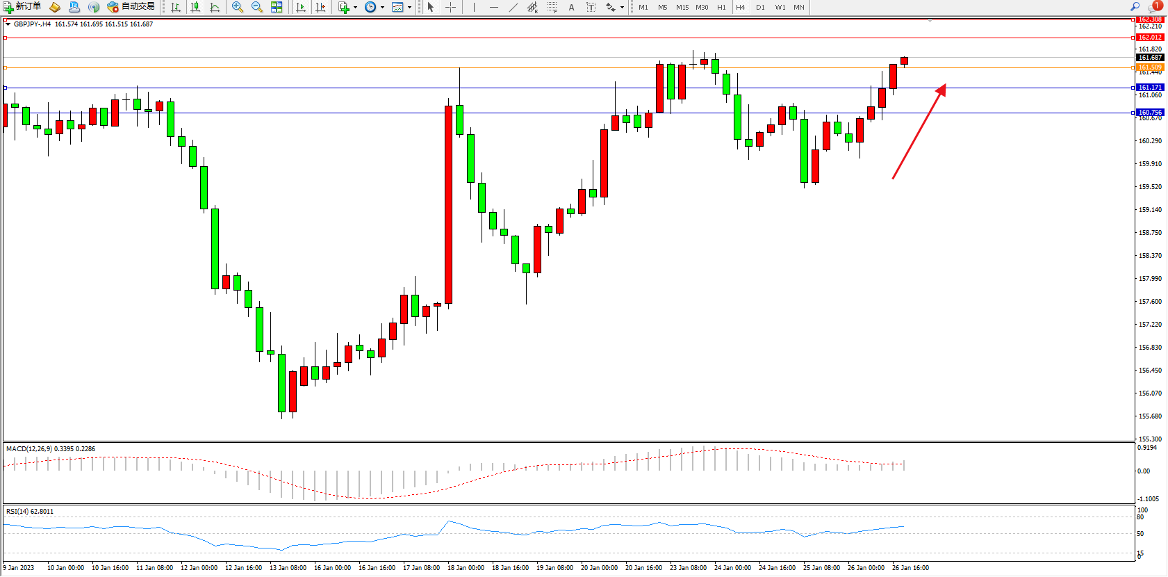 交易策略:161.509上方看涨,目标162.012、162.308