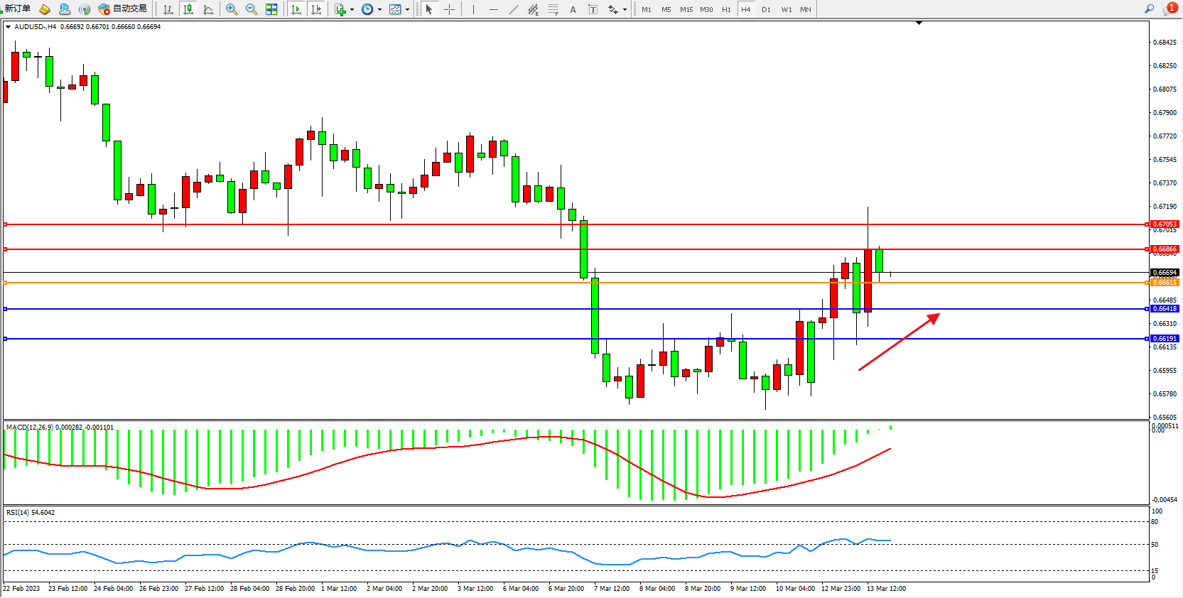 交易策略:0.66615上方看涨,目标0.66418  0.66191