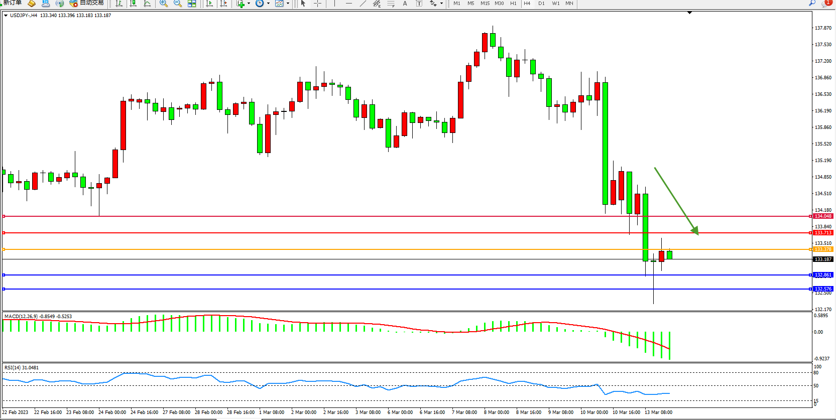 美元兑日圆维持133.187附近震荡硅谷银行事件影响趋弱,日元受到的负面影响不大。但是,本周还有美国的通胀数据要登场,数据所引起的利率调整预期起起伏伏,料将继续成为左右美日走势的主要影响因素。