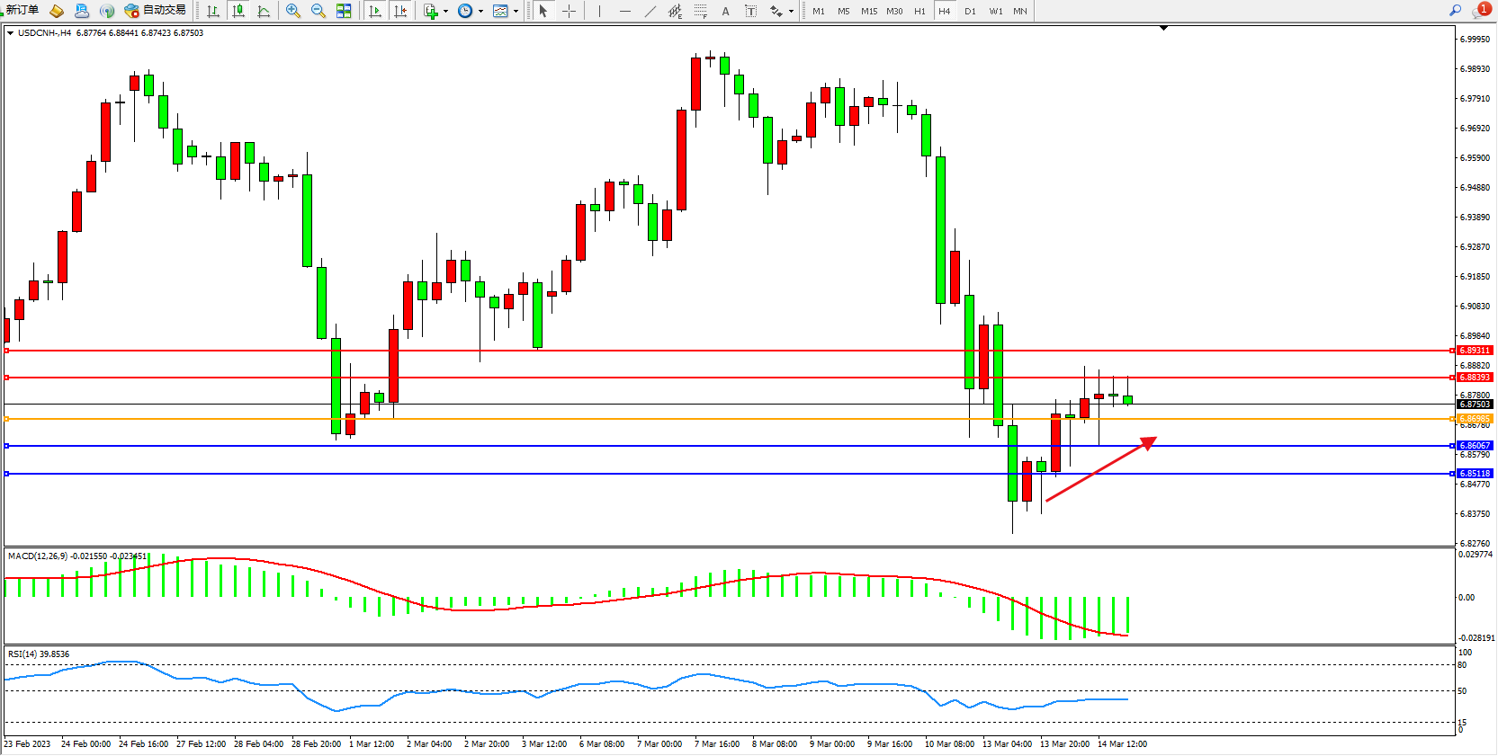 交易策略:6.86985下方看跌,目标6.86067  6.85118