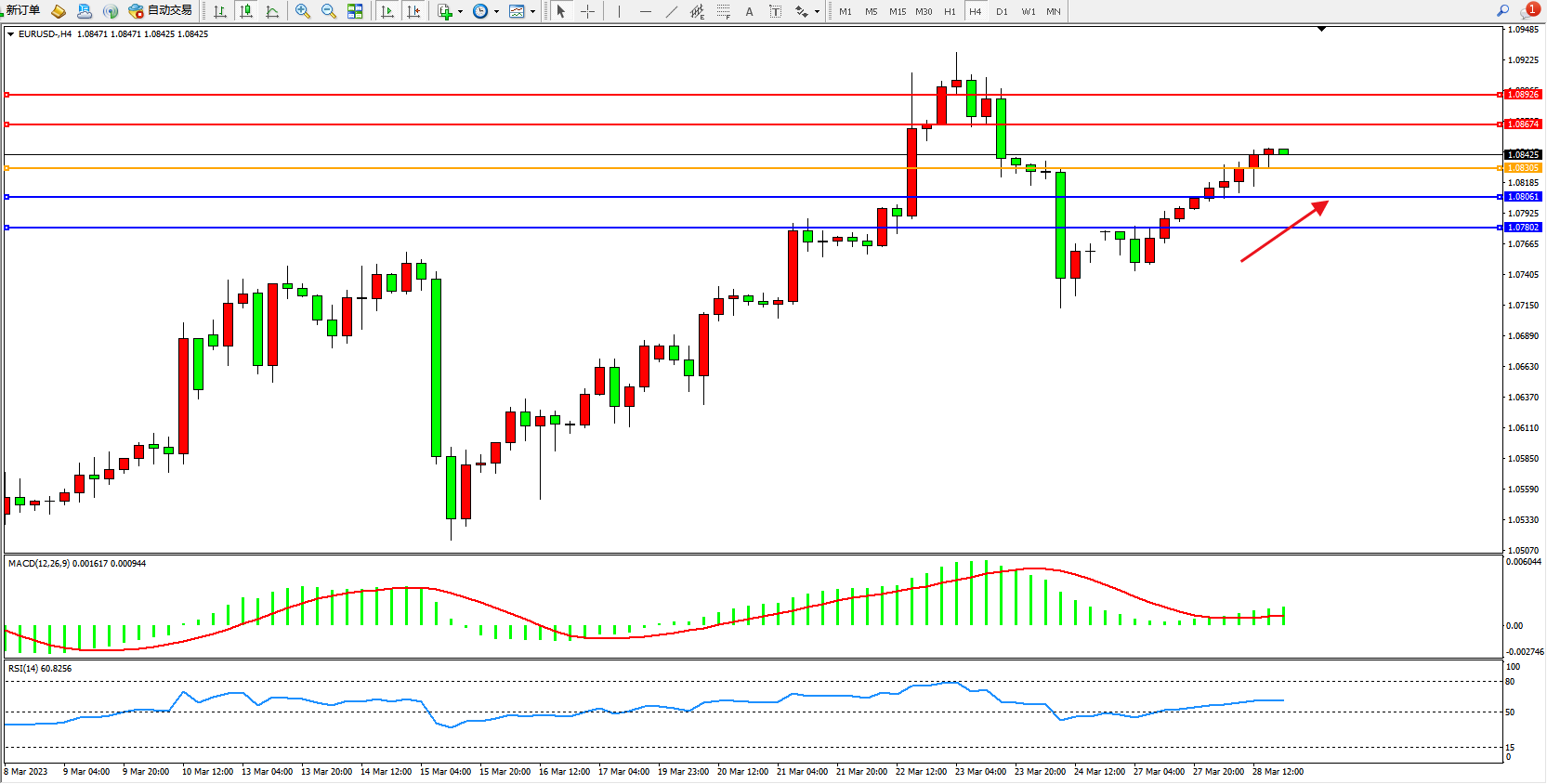 交易策略:1.08305上方看涨,目标1.08674  1.08926