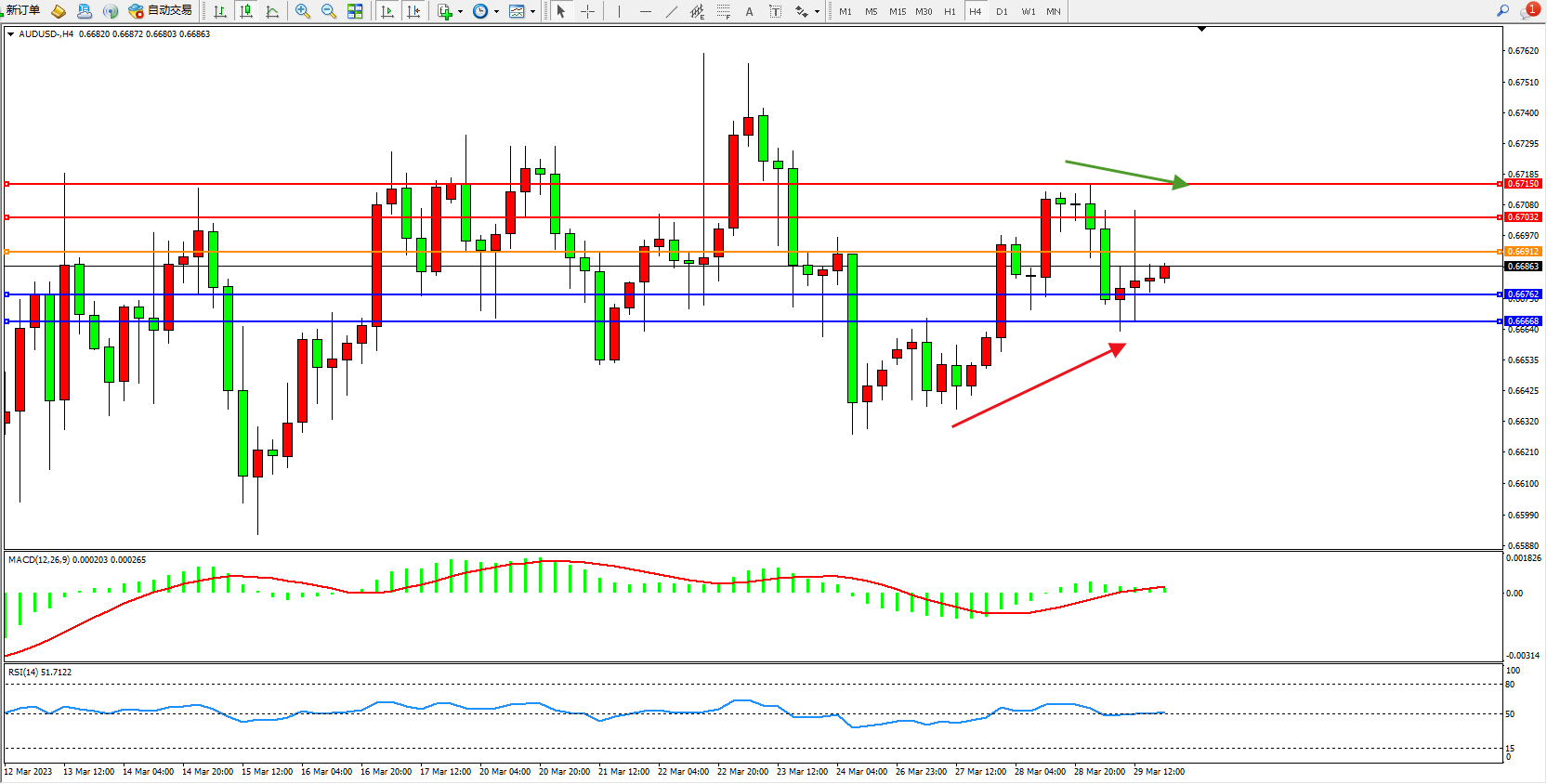 支撑位:0.66762 0.66666