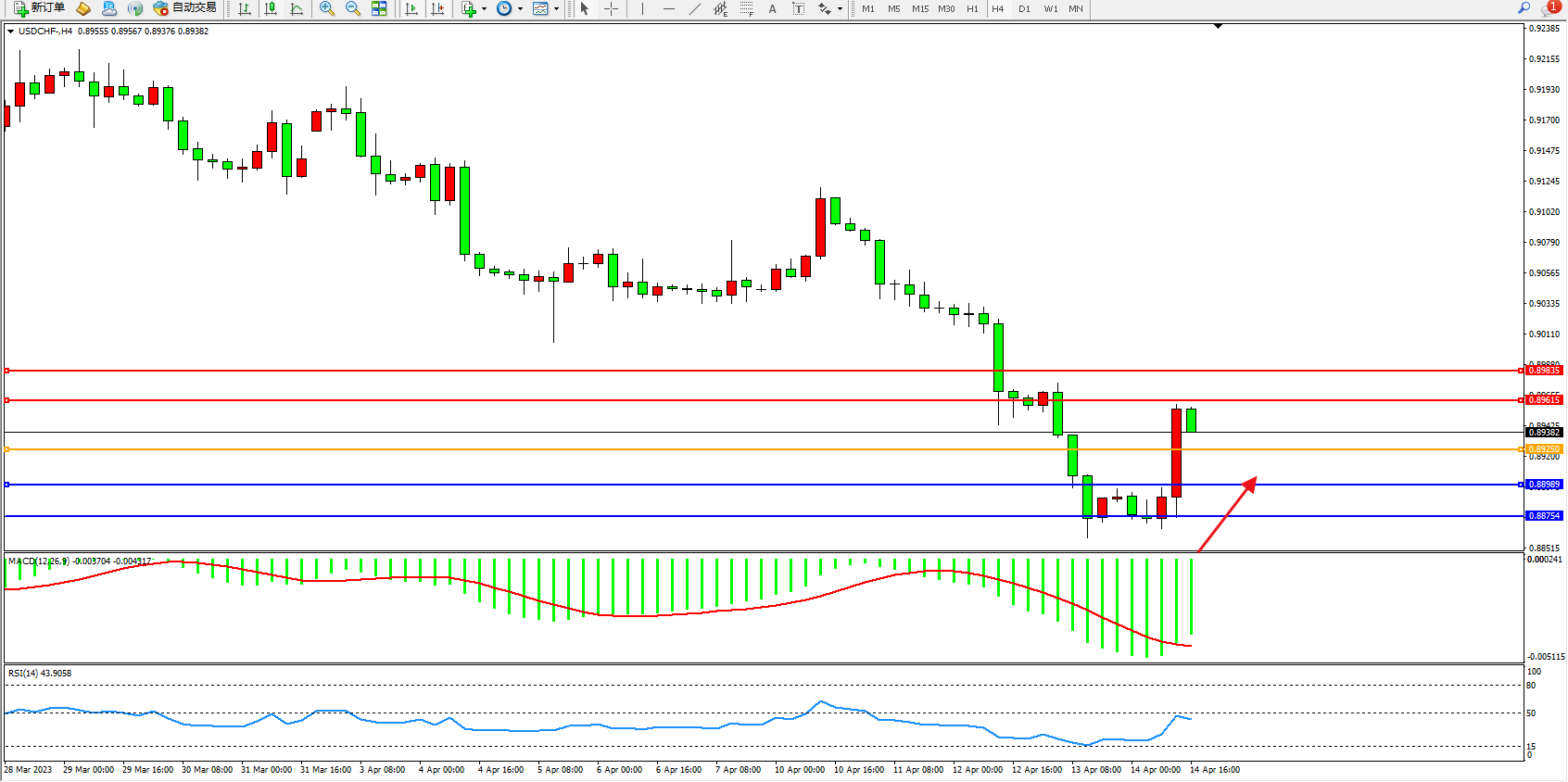 美元兑瑞郎维持0.89382附近震荡,美国短期利率期货市场反映出,市场认为5月加息的可能性约为不加息的四倍,略高于报告公布前的可能性。目前的目标区间为4.75%-5.00%。