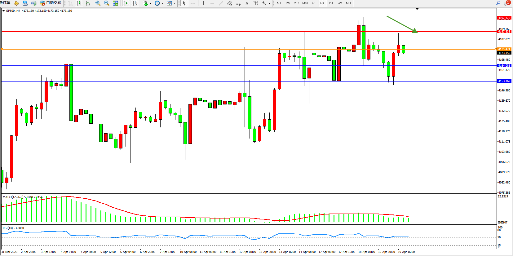 标普500指数4月19日(周三)收盘上涨0.04点,涨幅0.00%,报4154.91点;由于近期公布的一些数据表明,美国经济仍具有弹性,并加剧了人们对美联储可能还有更多工作要做的担忧。