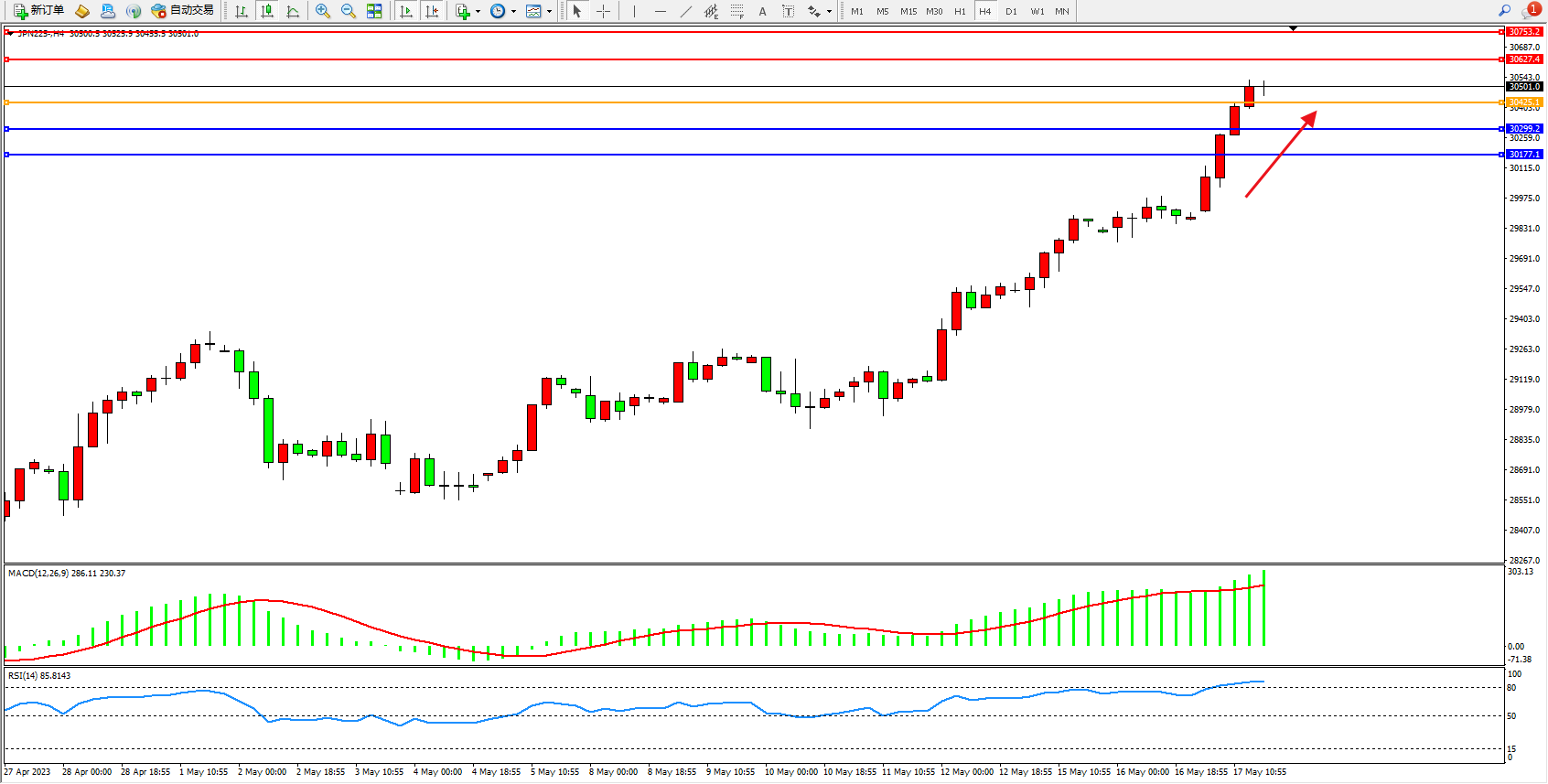 日经225指数5月17日(周三)收盘上涨230.51点,涨幅0.77%,报30073.50点。日本股市今年的涨势将延续下去,因盈利增长、股票回购和估值仍处于低位吸引了买家。巴菲特的认可、公司治理的改善提振了日本股市,而企业财报的表现或成为最新的催化剂,虽然算不上惊人,但东证指数的成分股公司预计,在截至2024年3月的财年,营业利润将增长6%左右。历史表明,企业的预估往往是保守的。