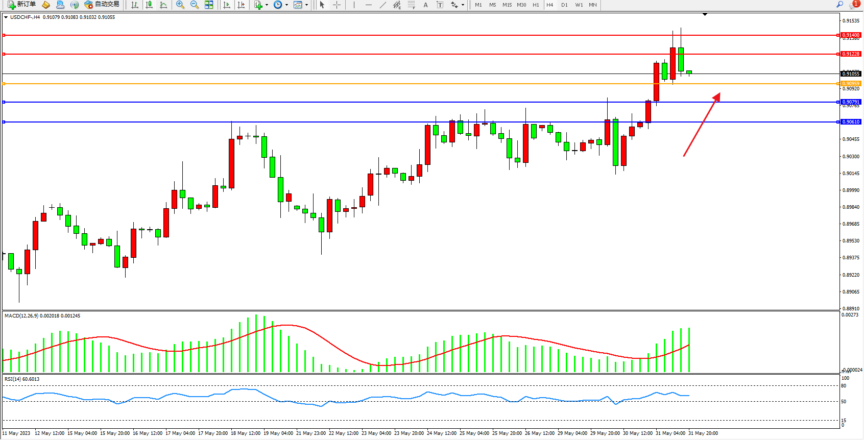 交易策略:0.90859上方看涨,目标0.91228 0.91400