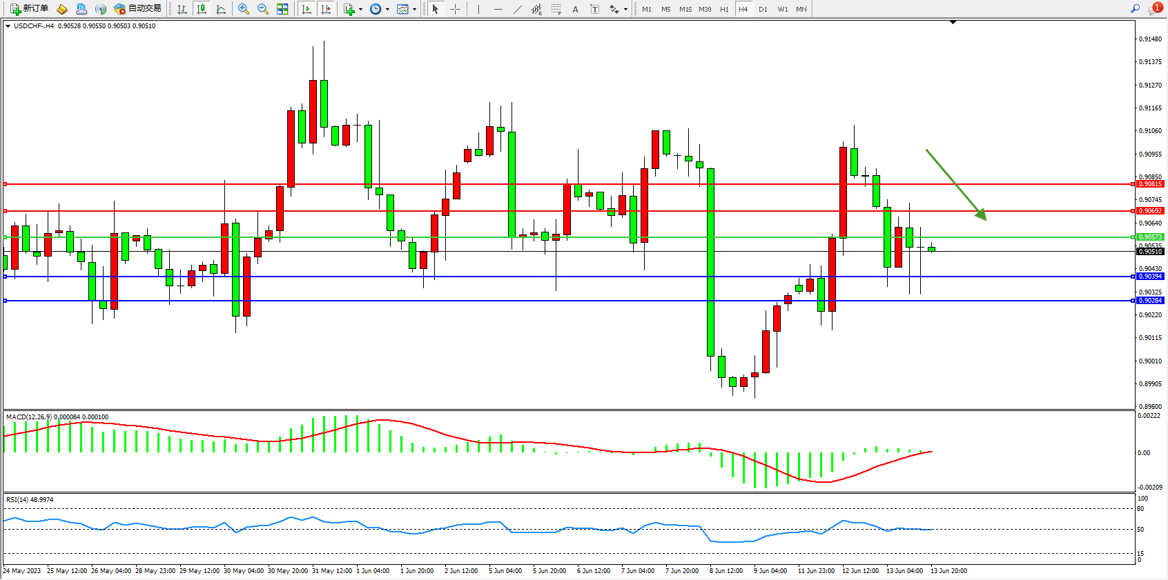 交易策略:0.90573下方看跌,目标0.90394 0.90284