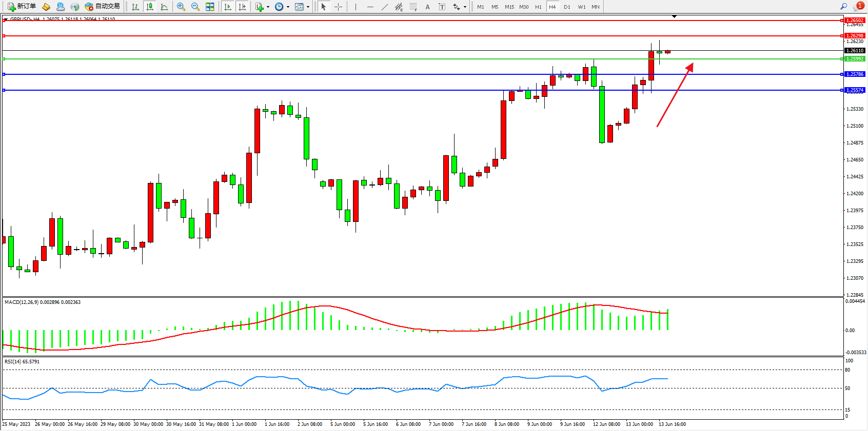 4小时图看:高位多头动力强势震荡上扬,短期看涨情绪依旧,市场多头不断拉升中,MACD指标处于多头区域高位震荡,RSI指标处于多头区域整理;