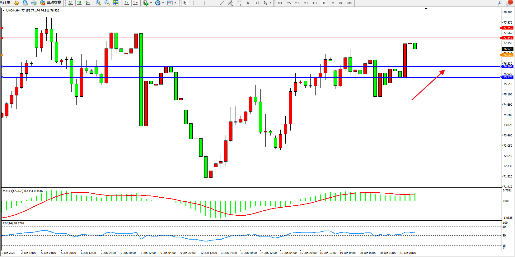 4小时图看:多头动力维持震荡上行,市场看涨情绪持续,短期有继续向上移动态势,MACD指标处于多头区域维持整理,RSI指标处于50均衡线上側弱势徘徊;