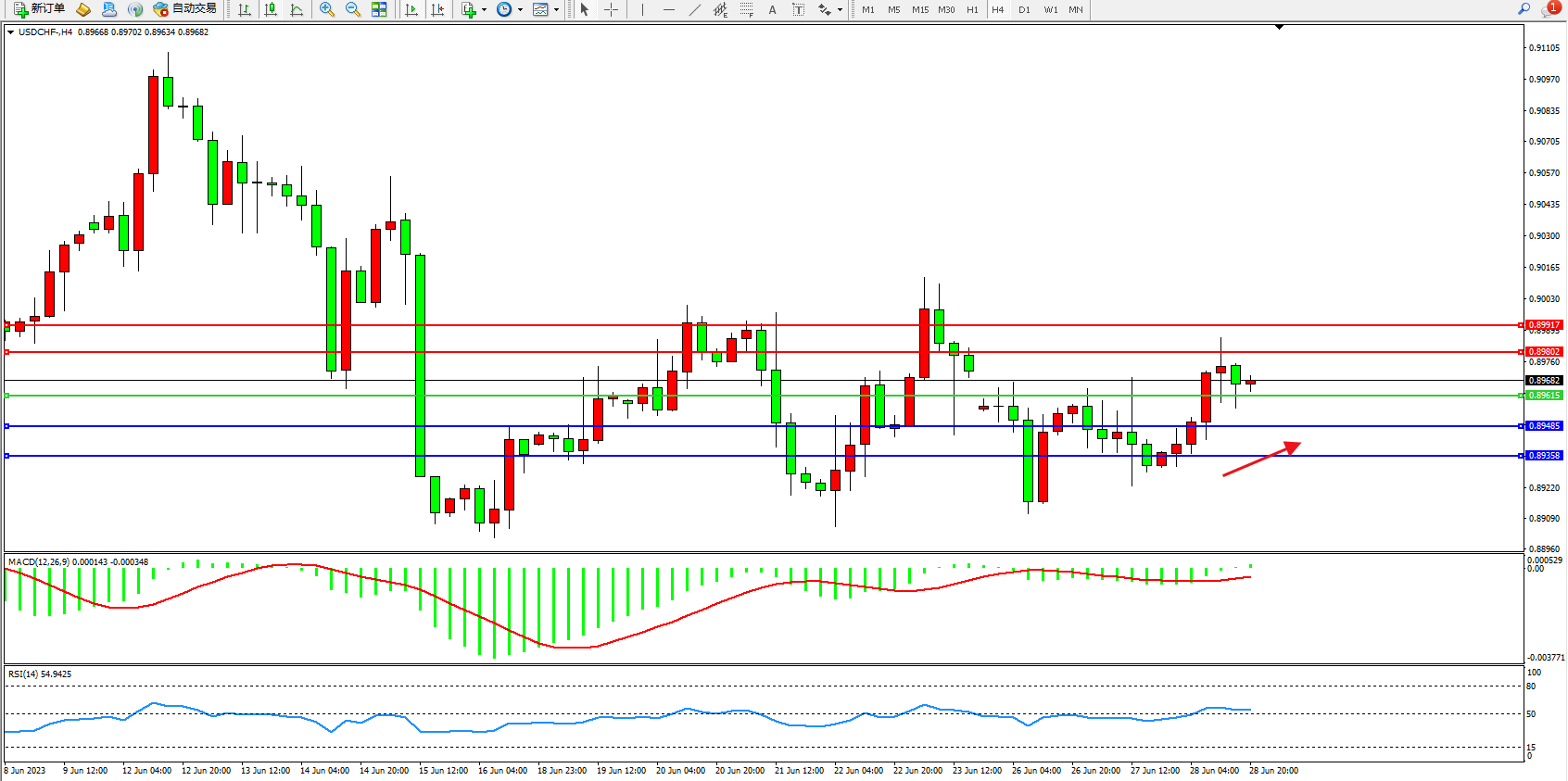 交易策略:0.89615上方看涨,目标0.89802  0.89917