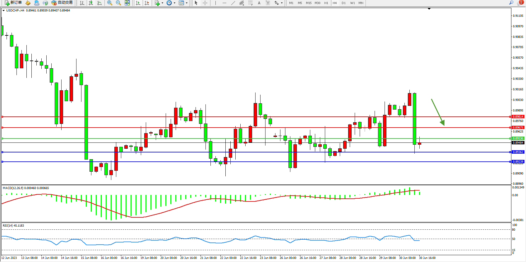 交易策略:0.89536下方看跌,目标0.89362  0.89239