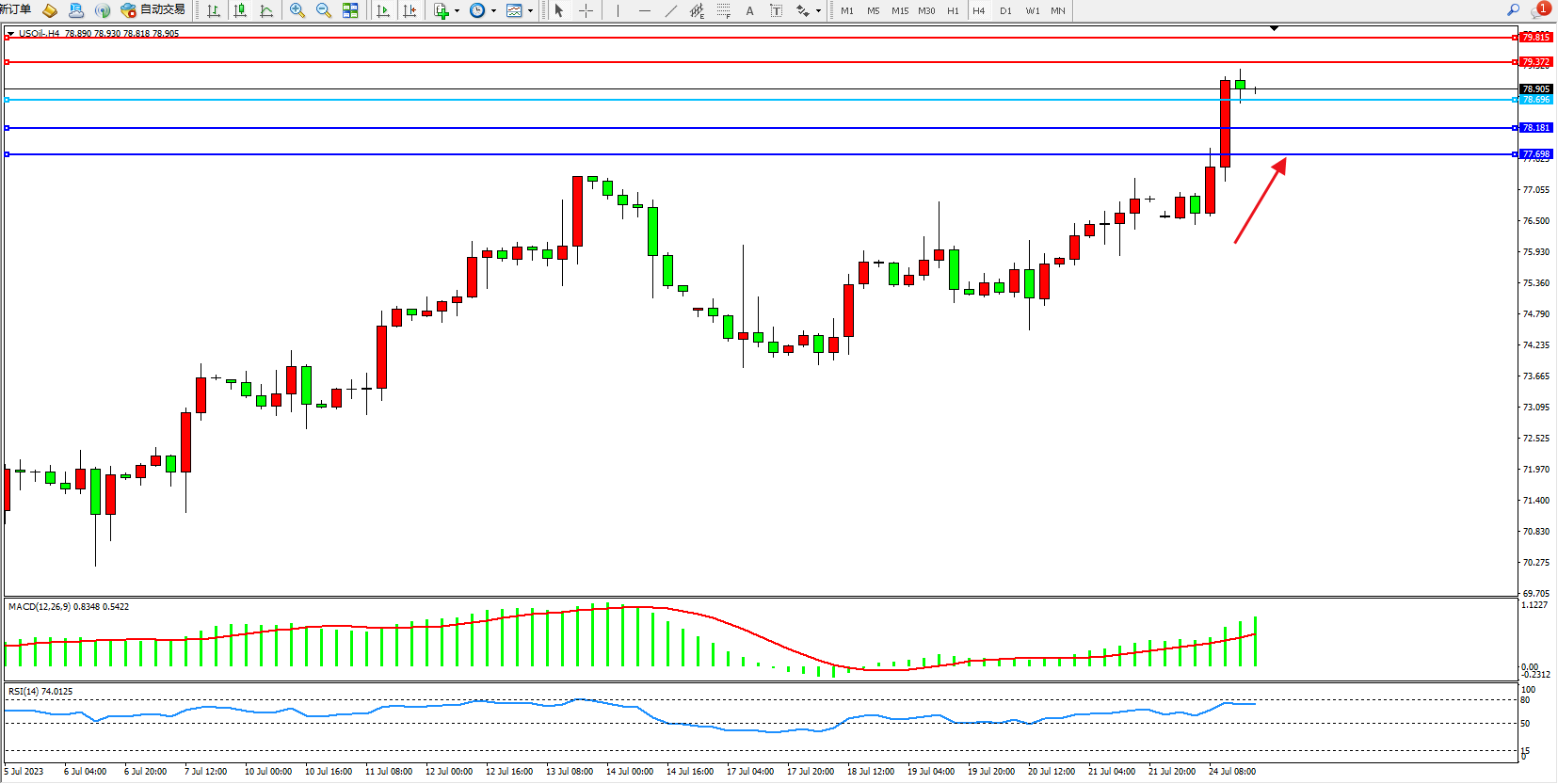 原油维持78.905附近震荡,交易员等待美联储和欧洲央行更多加息信号。但供应收紧以及中国刺激措施带来的利好限制了油价跌势。