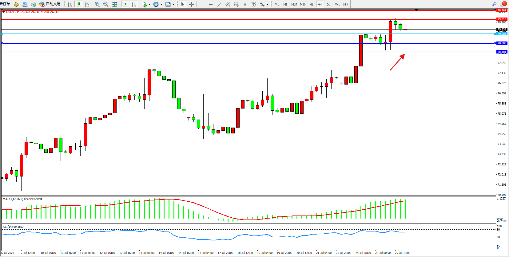 原油维持79.380附近震荡,受供给面和需求前景的乐观预期提振,隔夜油价创下近三个月新高后,油价暂时迎来震荡调整。