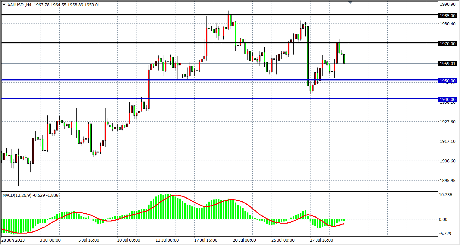 4小时图看,黄金在回调1950附近止跌反弹,MACD量能在零轴下有所缩量,行情维持宽幅整理,上方阻力1970-1985,下方支撑看1940-1950附近。