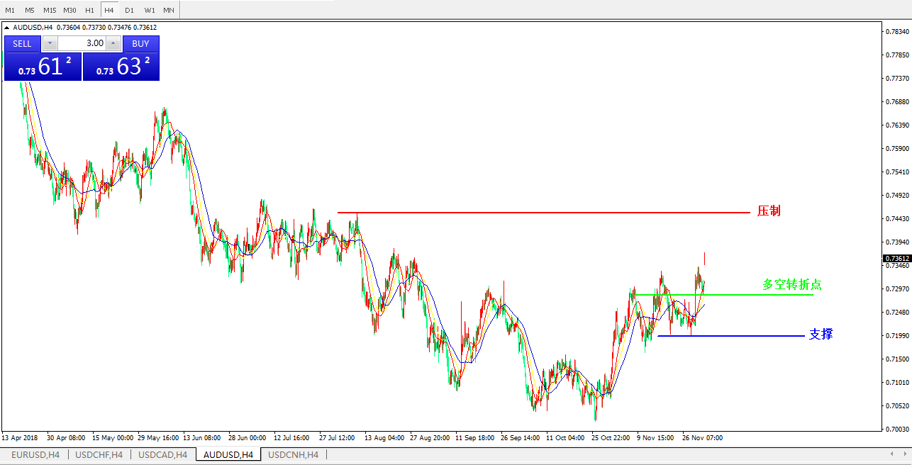 基本面简析:G20峰会过后,市场对国际贸易担忧情绪明显缓解,给原油和商品货币提供了上涨动能,亚洲股市开盘也大涨,澳洲综合指数,日经指数,韩国综合指数均涨幅超1%。