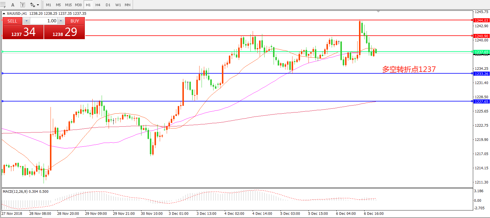 交易策略:在1237.00之上看涨,目标1240.00 1244.00
