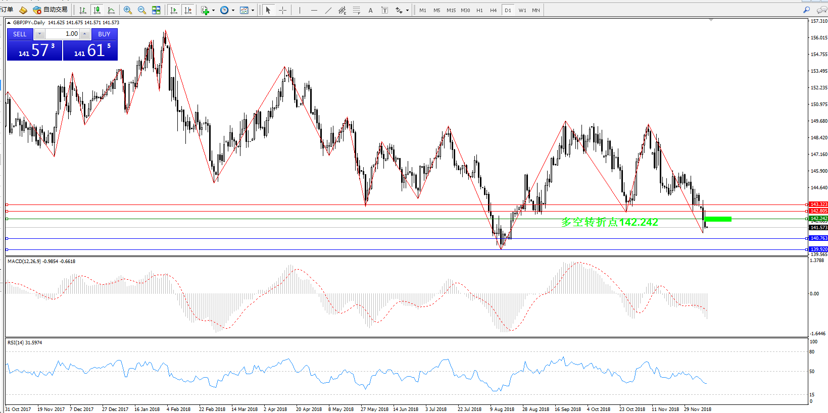 备选策略:142.242下方看跌,目标140.763139.920
