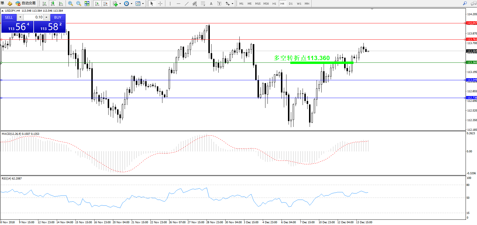 交易策略:113.360上方看涨,目标113.761、114.047