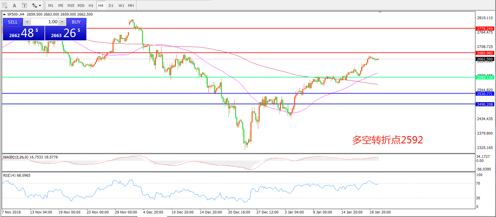 交易策略:在2590之上看涨,目标2685 2780