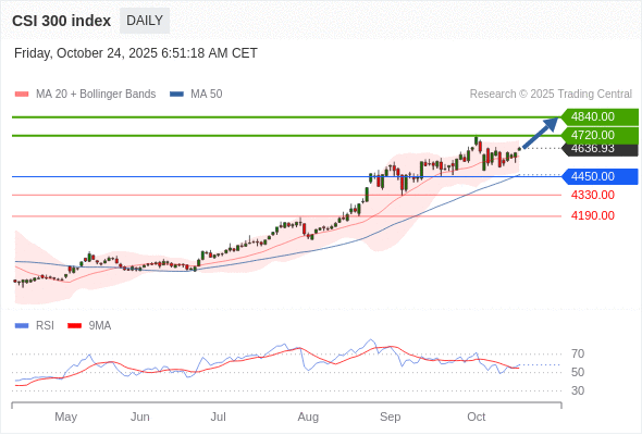 在 4450.00 之上,看涨,目标价位为 4720.00 ,然后为 4840.00 。