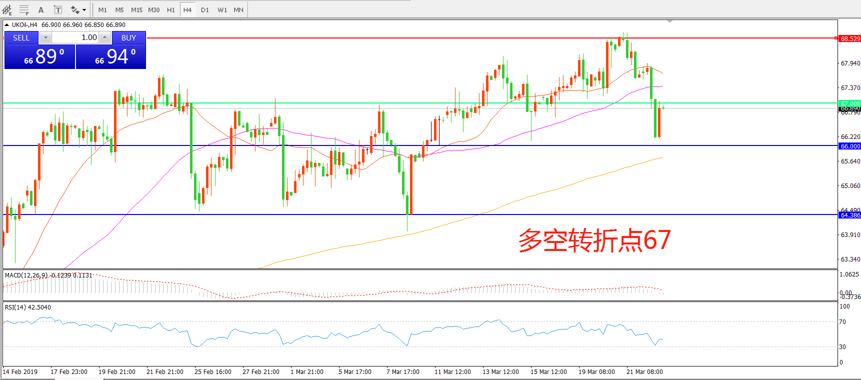 多空转折点:67.00