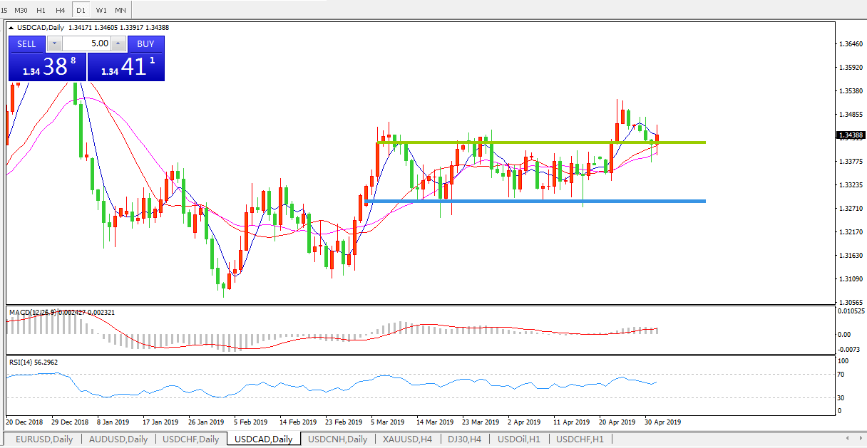 美元兑加元USDCAD 日线图: