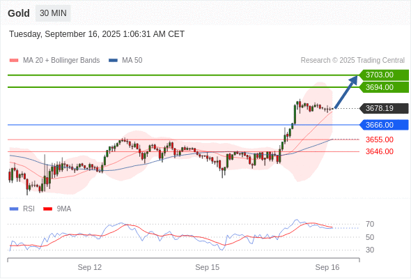 在 3666.00 之上,看涨,目标价位为 3694.00 ,然后为 3703.00 。