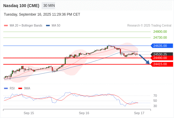 在 24635.00 之下,看跌,目标价位为 24490.00 ,然后为 24415.00 。