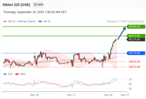 日经225股指期货 (OSE) 当日内: 目标位为45270.00。