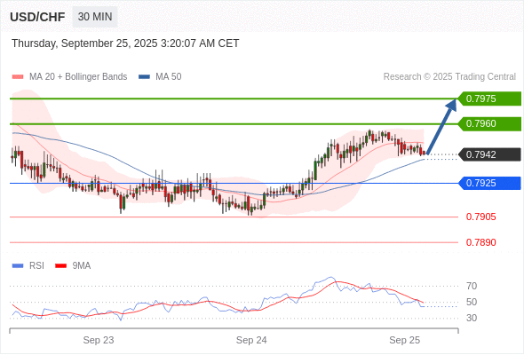在 0.7925 之上,看涨,目标价位为 0.7960 ,然后为 0.7975 。