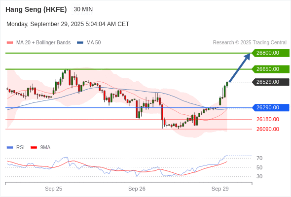 在 26290.00 之上,看涨,目标价位为 26650.00 ,然后为 26800.00 。