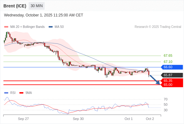 交易策略: 在 66.60 之下,看跌,目标价位为 65.35 ,然后为 65.00 。